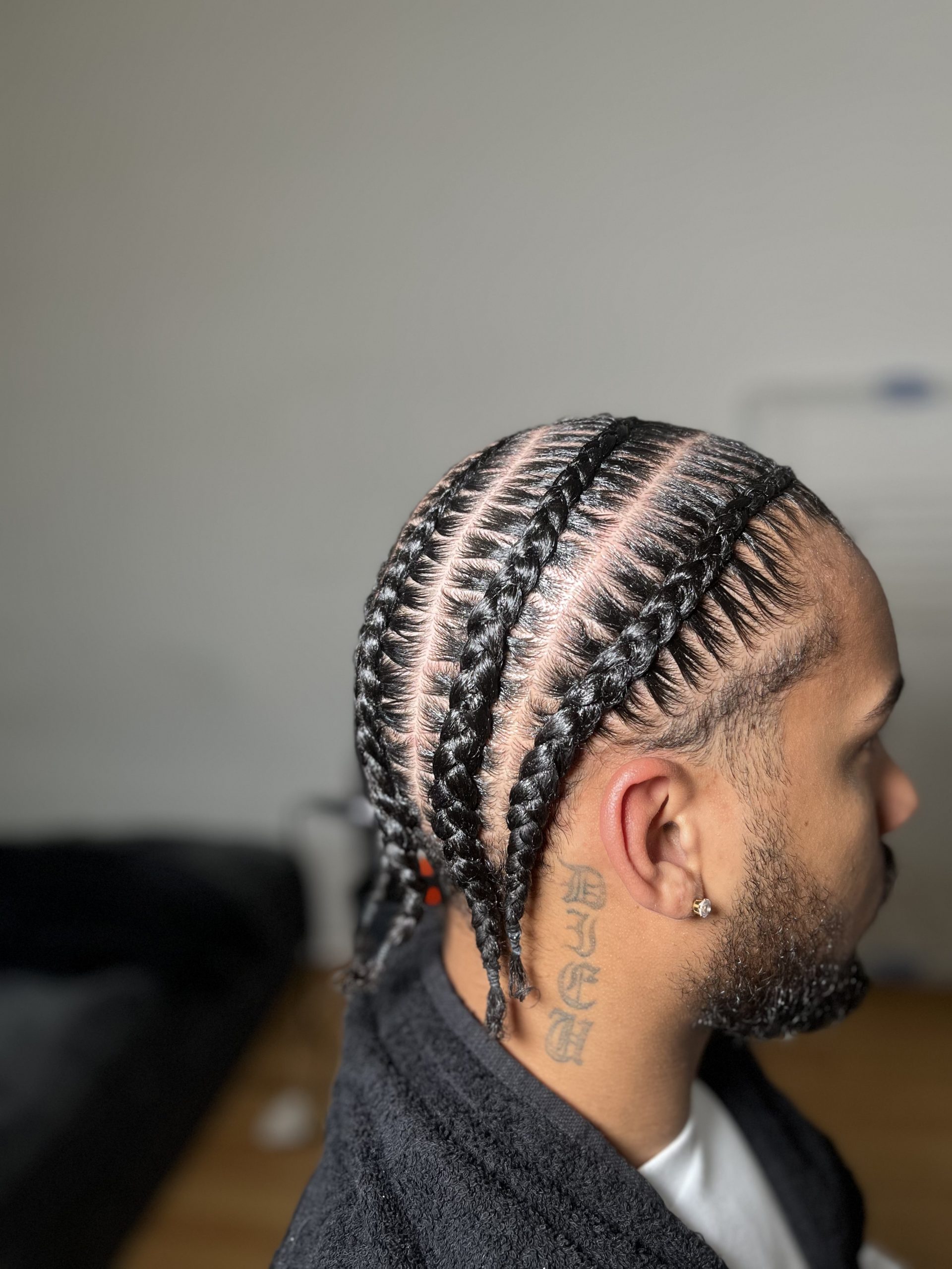 Ich biete professionelle und kreative Frisuren für jeden Anlass – für Männer und Frauen gleichermaßen. Mein Leistungsspektrum umfasst Cornrows, Twists, Barrels und Dreads. Zusätzlich biete ich für Frauen Braids, Ponytails, Crochet, SEW-in-Tressen und Wig-Installs an.