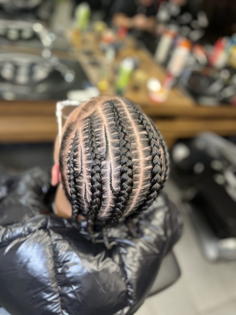 Diese zeitlose Flechtfrisur verbindet einen cleanen Look mit Kreativität. Cornrows sind nicht nur ein echter Hingucker, sondern auch sanft zu deinem Haar und halten zuverlässig – perfekt für jeden Anlass.