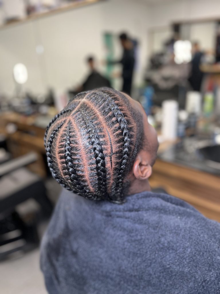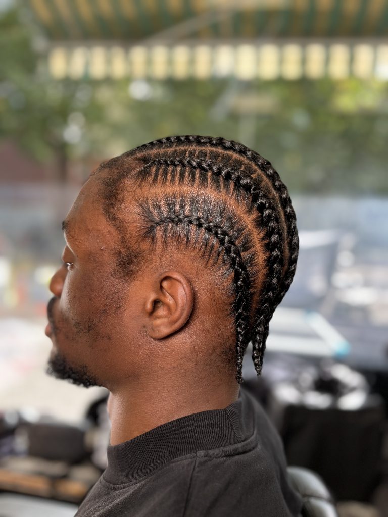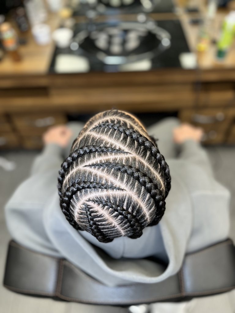 Diese zeitlose Flechtfrisur verbindet einen cleanen Look mit Kreativität. Cornrows sind nicht nur ein echter Hingucker, sondern auch sanft zu deinem Haar und halten zuverlässig – perfekt für jeden Anlass.